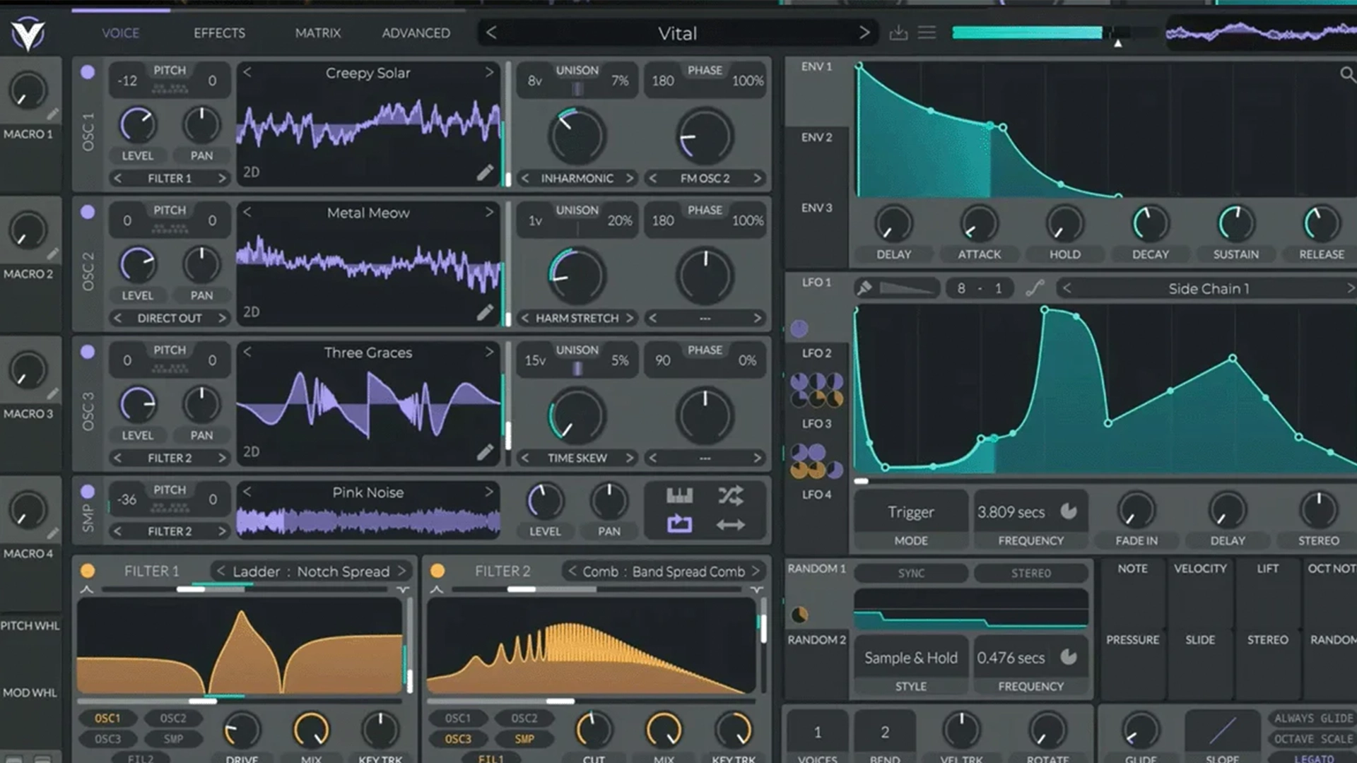 Vital is a powerhouse free VST synthesizer that has quickly become a favorite among music producers for its cutting edge wavetable synthesis and unmatched flexibility. With Vital, you get a fully featured synth engine that rivals many paid plugins, offering three high-quality wavetable oscillators, a sample section, and powerful spectral warping capabilities that let you stretch, shift, and morph harmonics to create entirely new sounds.