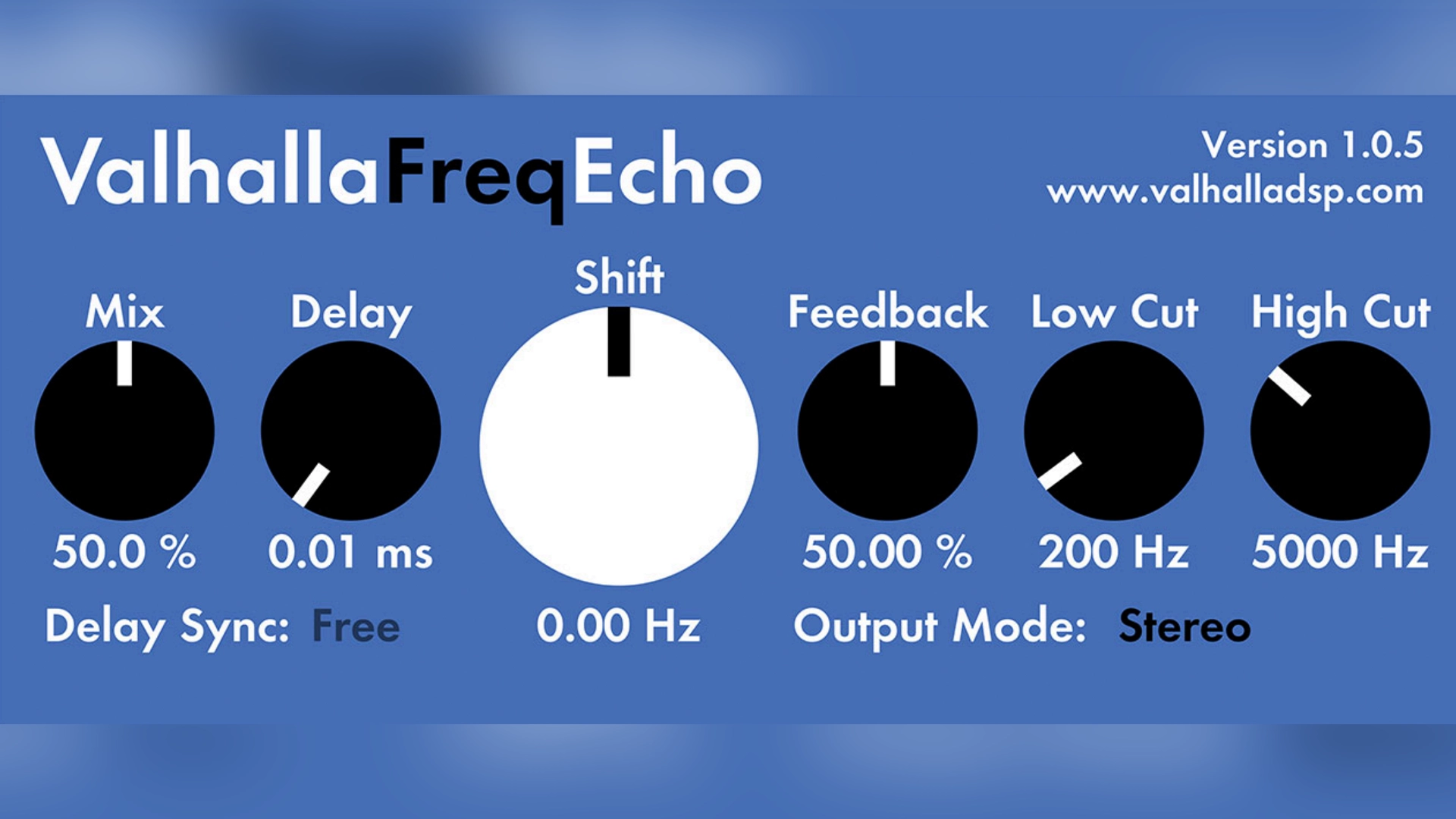 Valhalla Freq Echo is a frequency-shifting delay plugin that combines a Bode-style frequency shifter with analog echo emulation. Unlike standard delays that simply repeat the input signal, Freq Echo shifts the pitch of the echoes up or down, creating effects that range from subtle chorusing and double tracking to wild and evolving soundscapes. The plugin is free, cross-platform, and built by Valhalla DSP, a developer known for high-quality reverb and delay tools.